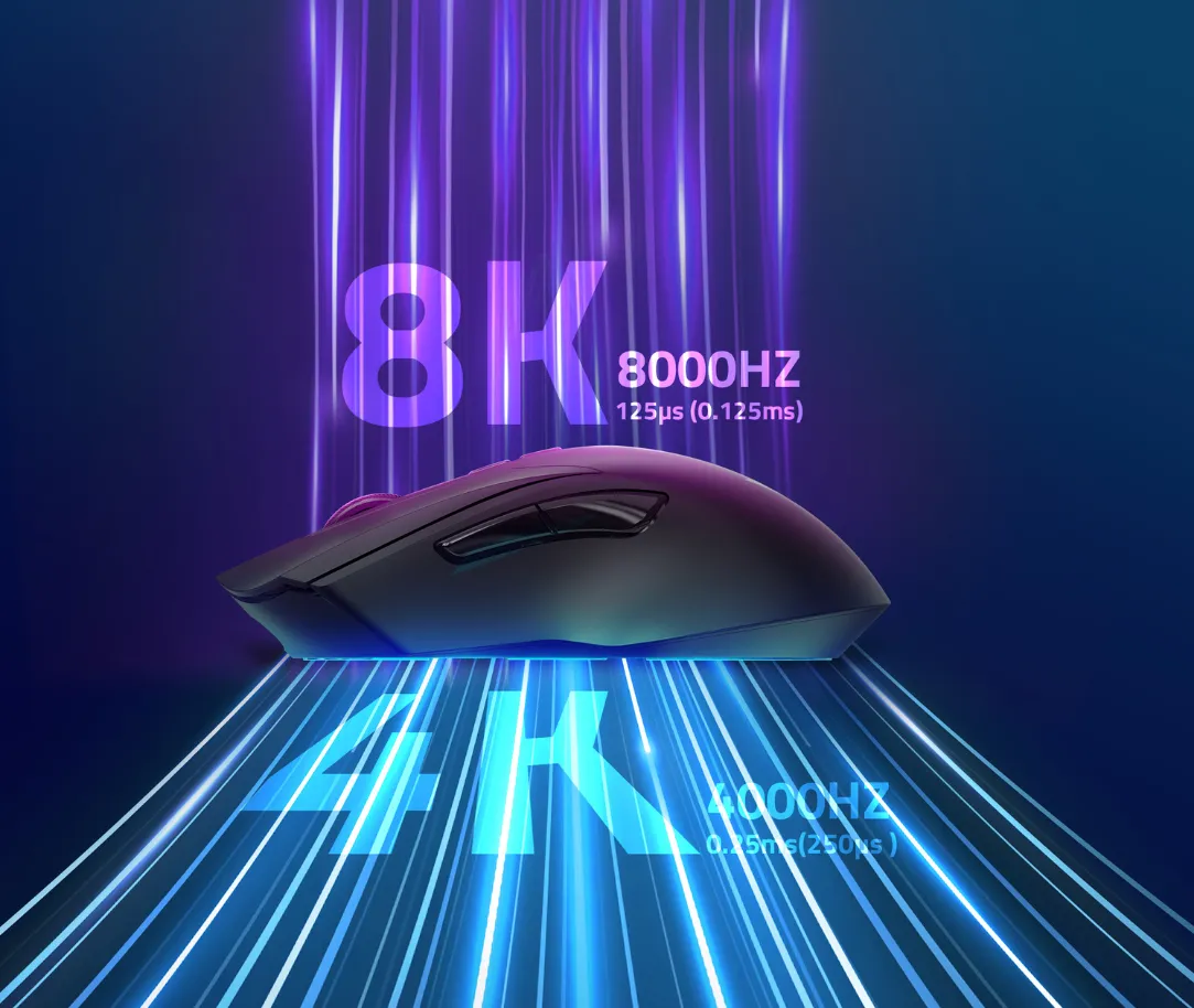 - Up to 8.000Hz (0.125ms) Wireless polling rate